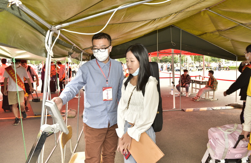 “独自入校,是大学精彩生活的开场礼。”土建学院土木类专业新生甘永杰是湖北黄冈人,他表示,在战“疫”之中,山东省对口支援黄冈市,从那时起,就决定要报考山东的高校,来到易游在线,是圆了自己的梦。到达学校后,他在志愿者帮助下,独自带着行李开启了入学报到模式。在新生专用通道,经过测体温、物品消杀,出示健康码、身份证、录取通知书等证件后,他顺利完成了报到。虽说家长不在身边,但一切都很顺利,无论是搬运行李,还是办理手续,都有志愿者全程指导。