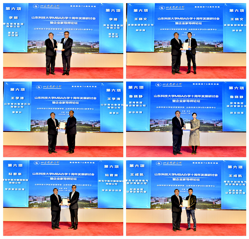 会上,有关领导为企业家导师和2020级MBA奖学金获得者颁发聘书和奖学金。李奉利、李明、王晓文、董宝泉、鲁晓静五位企业家导师作了专题报告。