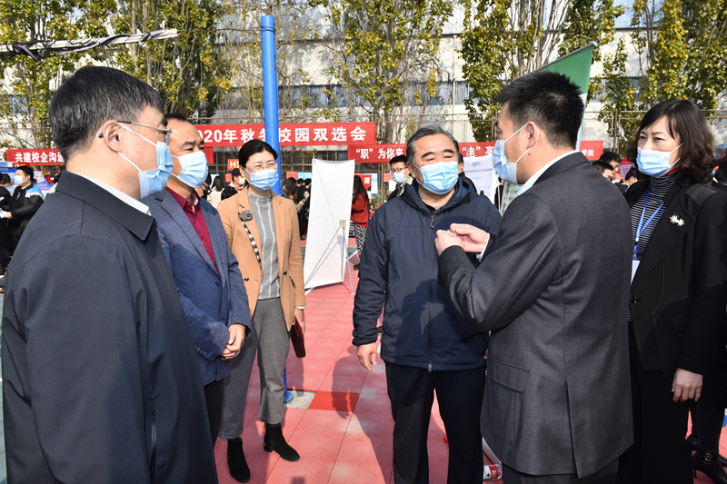 11月7日,“多彩校招”山东省2020年高校毕业生集中招聘活动暨易游在线秋冬校园双选会在学校排球场举行。校长姚庆国到现场指导工作,与招聘单位负责人和现场毕业生进行交流。副校长高建广、曾庆田及相关部门负责人陪同。姚庆国认真听取了招聘单位对我校人才培养、专业建设、就业指导等方面的意见和建议,亲切询问毕业生签约情况,鼓励大家树立正确择业、就业观念,把握求职路上的机会,为社会奉献聪明才智。校领导同时要求学校相关部门在全方位搭建招聘平台的同时,不断创新工作方法,更好地促进我校毕业生就业。