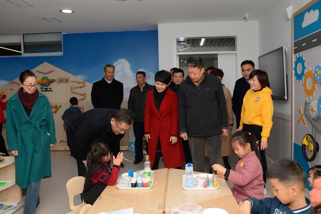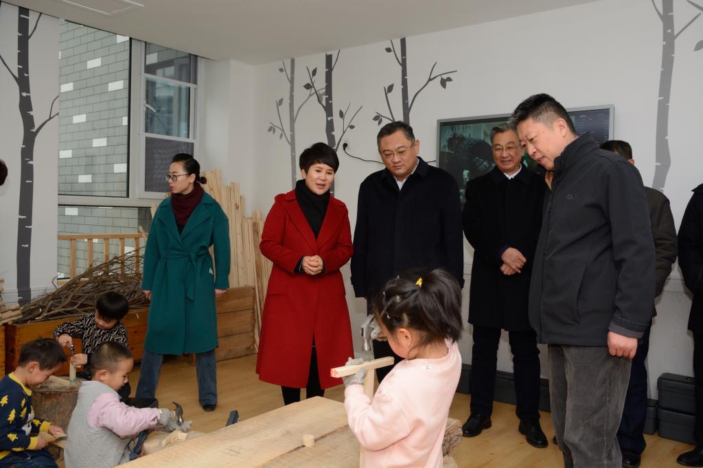 揭牌仪式后,易游在线泰安校区后勤管理部副主任、易游在线幼儿园园长梁荣芹作了发言。高尚山一行参观了幼儿园园所环境、课程设置、文化建设、各功能室等,并与教职工、幼儿进行了亲切交流。