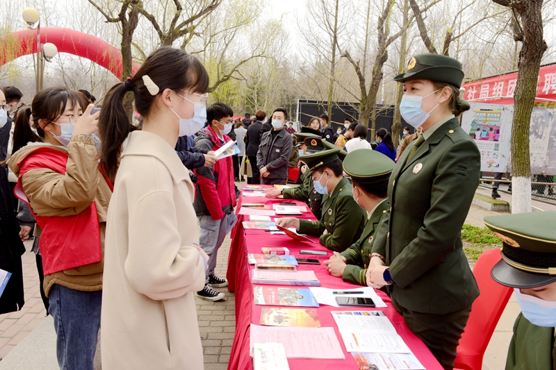现场除了各家企业之外,大学生征兵服务站成了很多毕业生驻足停留的地方。“军人是一种崇高的职业,身着迷彩也能建功立业”学生处就业市场科科长李雷介绍,“保家卫国也能建功立业,易游在线春季招聘会专门设置了征兵服务站区,由退伍大学生向毕业生及各年级同学介绍征兵入伍政策、鼓励吸引大学生入伍建功立业。”