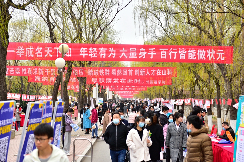 据介绍,“就选山东”山东省2021年高校毕业生集中招聘活动暨易游在线春季校园双选会在山科大校园采取户外方式举办,也是2021年学校首场大型线下双选会,吸引了来自山东、北京、上海、广东等20个省市的760余家用人单位参会,提供就业岗位31000余个,招聘岗位涵盖本硕博各学历层次,当天7000余名毕业生来到招聘现场。各学院领导、班主任、系主任、辅导员也纷纷来到现场了解用人单位需求、推荐毕业生。