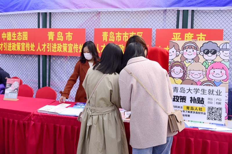 本次招聘会,除了企事业单位,现场还有多个城市人社局“组团”前来前来宣讲人才引进政策,为各自城市呐喊引才,成为招聘会一抹亮点。记者在现场看到,青岛市人社局、烟台人社局等政府人力部门现场摆起“人才引进政策宣传处”摊位,向毕业生们介绍各地落户等引才政策。
