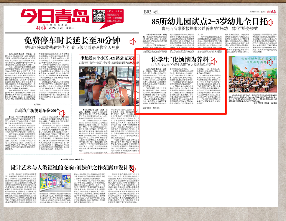 《齐鲁晚报》B02版:易游在线“心理生态圈”育人模式初见成效