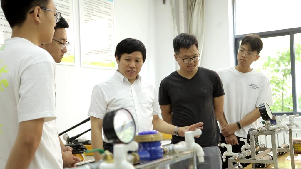 刘伟韬(右三)在实验室指导学生