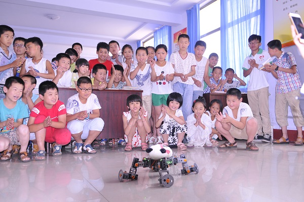“我要做一个会扫地的机器人,这样奶奶就可以休息一下”“我要做一个会飞的机器人,让他带着我看看外面的世界”……一群孩子围绕着一个正在跳舞的机器人兴奋地说出心中的愿望。