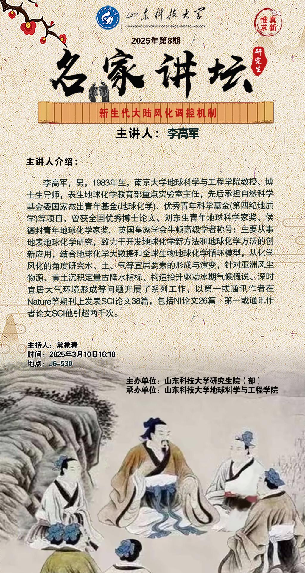 “名家讲坛”2025年第8期:新生代大陆风化调控机制(总1013期)
