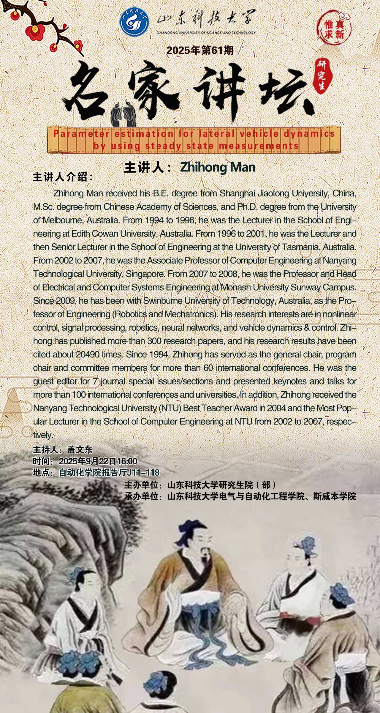 “名家讲坛”2025年第61期:Parameter estimation for lateral vehicle dynamics by using steady state measurements(总1066期)